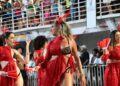 No enredo “Aruanayê – Guardiãs dos Mistérios Ancestrais”, a agremiação mergulha no legado das xamãs africanas e guerreiras indígenas que une sabedoria, espiritualidade e resistência feminina.